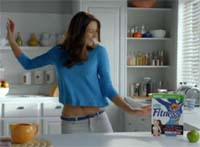 La scena poi si sposta in un contesto domestico dove le ragazze, davanti allo schermo di un pc, continuano a ballare seguendo le coreografie sul sito www.nestle-fitness.com. La voce fuori campo è quella di Rossella Brescia, che invita a provare i deliziosi petali di frumento integrale Nestlé Fitness, a cimentarsi nelle speciali coreografie da lei stessa ideate e infine a partecipare al concorso in collaborazione con Dimensione Danza con il quale sarà possibile regalarsi un nuovo look per l’estate.
