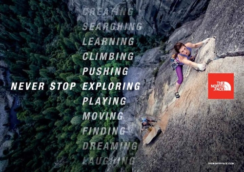 The North Face ha presentato oggi " Never Stop ", la sua prima campagna globale. La campagna, realizzata dall'agenzia Mekanism con filmati provenienti da tutto il mondo, conduce gli spettatori lungo un viaggio emotivo verso la scoperta di quell'euforia che regna agli estremi delle loro possibilità fisiche e intellettuali.