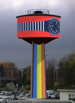 Quando i passeggeri giungono a Venezia, nell’area ritiro bagagli, durante l’attesa saranno intrattenuti dalle immagini diffuse da una serie di spettacolari Digital wall che trasmetteranno le immagini di inserzionisti istituzionali che diffonderanno informazioni relative a tutte le attività ricreative e culturali presenti in città. Uscendo dall’aeroporto, davanti agli occhi di tutti, da ogni zona, sia dalle logge degli arrivi che da quelle delle partenza, sia da tutti i parcheggi del piazzale è visibile una Torre Piezometrica, è un’attrezzatura fondamentale al sistema idraulico dell’aeroporto. Alta 22 metri, con un serbatoio cilindrico di 10m di diametro, alto 4m e posto a 16 metri d’altezza ci è sembrata un’ottima opportunità per realizzare un impianto spettacolare visibile da ogni posizione esterna dell’aerostazione. L’idea è stata quella di rivestire l’intera superficie del cilindro con una maglia di led che sarà in grado di riprodurre video colorati e luminosi che si muoveranno su tutta la circonferenza sfruttando tutti i 360° di visibilità dell’impianto