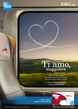 La creatività multi soggetto, in grado di valorizzare la ‘relazione d’amore’ tra chi viaggia sui treni ad alta velocità Italo e la nuova Carta, vede protagonista il finestrino: paesaggi italiani si susseguono come sfondo a ‘messaggi d’amore’ dedicati al viaggiatore.