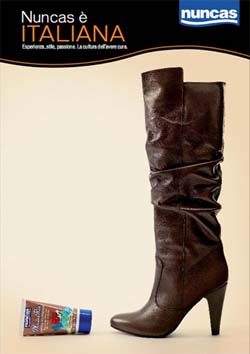 Nuncas ha scelto per la propria campagna Efrem Raimondi, fotografo di fama internazionale che ha saputo interpretare e tradurre il dna dell’azienda in cinque originali scatti, che coloreranno le vetrine dei punti vendita fino alla metà del 2011: dal cuscino bianco abbracciato da Luciana Francioli, testimonial della campagna allo stivale di pelle la cui forma ricorda la nostra penisola e richiama uno dei prodotti Nuncas, dalla tavola apparecchiata alle tende di casa, espressioni della cura dei tessuti per terminare con la Lambretta, personalizzata Nuncas, simbolo dei 75 anni di storia dell’azienda.