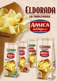 Dopo la vittoria della gara da parte di M&C Saatchi che ha avuto la meglio su Tbwa\Italia, Leo Burnett, In Adv, Leagas Delaney (leggi news), on air in tv dal 27 aprile sulle reti Rai e Mediaset, e a breve in radio, la creatività dell'agenzia per il lancio delle patatine Eldorada di Amica Chips. Come pubblicato da ADVexpress (leggi news), dalle immagini apparse in anteprima sulla pagina Facebook del brand si intuiva che lo storico testimonial Rocco Siffredi non sarebbe stato il solo protagonista della nuova campagna. Ad affiancarlo c'è una splendida Ornella Muti che rivive nello spot tv attraverso immagini di repertorio che ne esaltano la autentica bellezza di un tempo. Artificio utilizzato in post produzione che intende riportare all'artigianalità e autenticità del prodotto stesso, realizzato secondo le ricette di una volta.