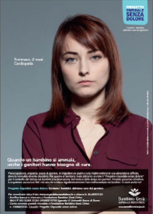 Protagonisti del progetto di comunicazione sono i genitori dei piccoli pazienti , con la testimonianza silenziosa del loro dolore e delle loro preoccupazioni (“ Quando un bambino si ammala, anche i genitori hanno bisogno di cure ”). Il volto dei genitori è il volto di un Ospedale accogliente che si apre al racconto delle famiglie. Alleviare il dolore dei bambini significa alleggerire, almeno in parte, l’angoscia e le preoccupazioni di chi gli sta vicino . Alle cure di eccellenza per i piccoli pazienti corrisponde la presa in carico del nucleo familiare (“ Curiamo i bambini, abbiamo cura dei genitori ”).