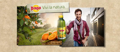 L'idea di ritorno alla natura, fonte di benessere e di armonia interiore, è espressa nella campagna ”Pago. Vivi la natura” attraverso un visual di forte impatto: la natura, con la sua solarità e quiete, è rappresentata come una presenza immanente o uno stato di grazia che il consumatore, che cammina immerso in uno scenario urbano, può evocare evivere grazie al “ponte” creato dalla naturalità del succo di frutta Pago.