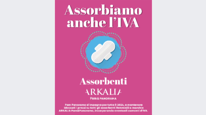 Dopo l’adesione all’iniziativa del “il trimestre Antinflazione”, attivata per supportare concretamente il potere d’acquisto delle famiglie bloccando il prezzo di più di 600 prodotti evidenziati a scaffale dal flapper Spendi meno e, vista la possibilità dell’aumento delle aliquote IVA su una serie di prodotti, Pam Panorama ha deciso di bloccare il prezzo di tutti gli assorbenti femminili della linea Arkalia Pam Panorama e di inglobare eventuali aumenti di prezzo dipendenti da tale possibilità.