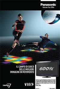 Pianificazione anche su stampa: coinvolti tutti i principali quotidiani sportivi con uscite previste fino al 29 aprile. La creatività pone l’accento sulla fluidità e nitidezza delle immagini in movimento, vero punto di forza della tecnologia Viera a 600Hz. Coinvolta anche la rete, con banner sui siti dei principali quotidiani sportivi, su Yahoo e goal.it.