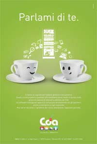 Anche in questa occasione, CDA ha scelto la creatività dell'agenzia di comunicazione Emporio ADV di Enrico Accettola, che ha proposto un concept fresco, dinamico e familiare per comunicare in modo diretto un servizio sicuro, efficiente e di qualità. Un visual d'impatto su sfondo verde particolarmente friendly, giocato sull'immagine di due simpatiche tazzine da caffè 'parlanti', richiama subito alla mente l'headline e il concetto di comunicazione a distanza.