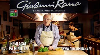 Ma il sito interattivo non è l’unico canale attraverso il quale la nuova campagna di comunicazione Giovanni Rana si sviluppa; per rendere più accessibile l’universo di Giovanni Rana e il suo nuovo sito interattivo www.giovannirana.se, è stato inoltre creato un spot di 30" per la tv svedese. La produzione e realizzazione degli spot sono di Bedeschifilm, che da ormai più di un anno si è specializzata nella regia e produzione di filmati pensati specificatamente per le nuove piattaforme internet. In questo caso, per le riprese è stata scelta la mano di Giovanni Bedeschi regista che vanta una lunga collaborazione con Giovanni Rana (sua la regia degli spot della serie “Indovina chi viene a cena”). L’insieme di una luce calda e accogliente, un bel set e uno styling preparato con naturalezza, rendono il filmato spontaneo e di qualità.