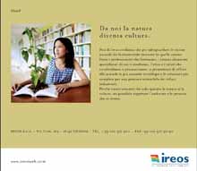 Tono deciso e perentorio per la nuova campagna stampa Ireos “Da noi la natura diventa cultura”. Il visual che rimanda immediatamente al claim, mostra una pianta che “nasce” da un libro aperto davanti agli occhi sorpresi e ammirati di una giovane studentessa. La body copy, sottolinea in maniera inequivocabile l'impegno di Ireos nello sviluppo delle risorse umane, nella formazione scientifica e tecnica nonché nella promozione e condivisione di una vera e propria cultura in tema ambientale.Dopo la campagna 2010, realizzata in occasione del trentesimo anniversario di Ireos, quest'anno ritorna il lay out e il registro che hanno caratterizzato la comunicazione dell'azienda genovese a partire dal 2006. Anche per la campagna 2011 è stato utilizzato infatti un linguaggio forte e diretto, quasi da social advertising, accompagnato da un'immagine emotivamente coinvolgente.