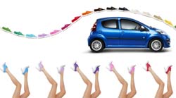 In tv, l’auto viene mostrata nei suoi due colori inconfondibili, Blu Electra e Bianco Lipizan con copricerchi personalizzati Superga e retrovisori colorati blu o bianco, all’interno della cornice multicolore di scarpe Superga: le classiche a suola bassa, una leggenda dello stile casual, e gli originali modelli con il tacco. Il fondo bianco e la musica allegra creano un’atmosfera in linea con lo spirito del target di 107, dinamico, glamour e indipendente, espresso dal claim 'Independence way'. La stampa mostra un ironico accostamento dei due prodotti, con il sovradimensionamento della scarpa. Il radiocomunicato segue la stessa logica, in modo divertente e spiazzante.