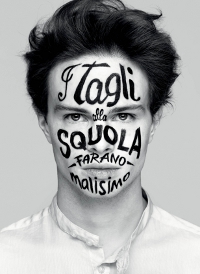 Esemplificativa la scritta sul volto di un ragazzo che lamenta le scarse risorse per l’educazione e la cultura: “I tagli alla squola farano malisimo”.