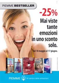 La comunicazione promozionale è un appuntamento tra i più importanti per Piemme. È questo, infatti, il momento in cui è possibile entrare in contatto con il lettore valorizzando, al di là dell’offerta promozionale, la qualità della proposta editoriale complessiva e slegandosi dai singoli titoli.E’ con questo criterio che Phoenix ha messo a punto la comunicazione della promozione estiva, che offre tutti la collana Bestseller con il 25% di sconto.