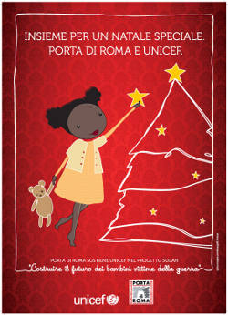 Il centro commerciale Porta di Roma, si fa portavoce di una campagna di comunicazione solidale a favore di Unicef, nell’ambito del progetto Sudan 'Costruire il futuro dei bambini vittime della guerra'. L’iniziativa è stata curata da Leo Burnett ed è supportata da affissioni dinamiche nella città di Roma, campagne su stampa locale e iniziative sull’web, che consentiranno di accrescere la visibilità di Porta di Roma tra i navigatori in rete.