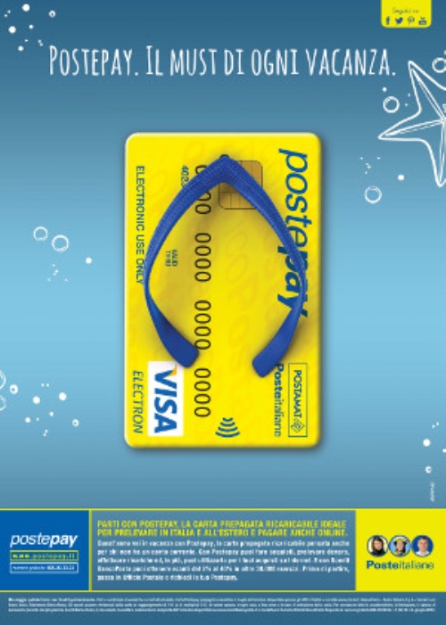 La campagna gioca sul claim “Postepay. Il must di ogni vacanza” per illustrare i pregi della card prepagata, che permette di viaggiare liberi dal contante e permette di acquistare online in assoluta sicurezza.