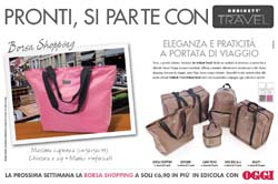 Da fine marzo e per un mese è nuovamente on air la campagna stampa affidata a Italia Advertising da RCS Media Group Divisione Periodici per un prodotto collaterale del settimanale Oggi. La campagna è pianificata dal 28 marzo sul settimanale Oggi e sarà presente per circa un mese anche su altri periodici del Gruppo.Sulla scia del successo riscosso lo scorso anno, RCS ha deciso di rilanciare l’utile e versatile set Ordinett Travel, composto da borsa shopping, borsone da viaggio, zaino termico, borsa scarpe e beauty. Ideale per weekend e brevi trasferte, il set è disponibile in due varianti colore: rosa e marrone.
