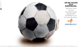 'La vittoria è oltre gli schemi', con questo augurio ProntoBollo tifa per la Nazionale, in vista della prossima partita Germania-Italia agli Europei 2012. Un annuncio che uscirà sulla stampa proprio giovedì 28, giorno in cui si disputerà il tanto atteso confronto calcistico. Che diventa il pretesto per un annuncio istituzionale di ProntoBollo, l’azienda che nella Capitale è specializzata nel fornire servizi che sollevano le aziende dal peso della burocrazia. Andare oltre gli schemi potrebbe servire all’Italia non solo per vincere una partita agli Europei, ma anche al Paese per vincere la partita in Europa contro la crisi del debito. E allora, come recita l’headline, 'un bel calcio alla burocrazia'.
