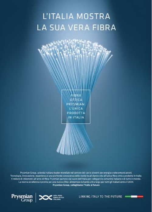 Il claim della campagna, 'L’Italia mostra la sua vera fibra,' porta all’attenzione dell’opinione pubblica, dei clienti, dei prospect, dei partner tecnologici, delle istituzioni e delle associazioni di categoria l’offerta Prysmian Group, specializzata nella produzione di cavi e sistemi per l’energia e le telecomunicazioni.