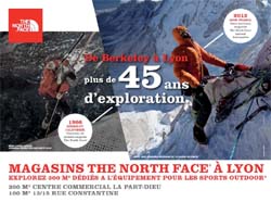 Nasce un nuovo format per le aperture degli store The North Face: Pubblimarket2, l’agenzia udinese specializzata in strategie di marketing olistico, in occasione dell’inaugurazione del nuovo punto vendita, presso il centro commerciale 'La part dieu' di Lione, ha ideato e interamente sviluppato un format che, oltre a promuovere questo nuovo store, diventerà la personalizzazione ufficiale di tutte le future inaugurazioni The North Face in Europa. Questo approccio permette di mantenere uno stretto legame con i valori del brand e di adattarli alle caratteristiche delle singole località in cui la creatività troverà applicazione. Il soggetto rappresenta il forte contrasto tra il passato ed il presente e, più precisamente, raffigura da una parte la prima spedizione del 1966, affiancata dalla descrizione dell’apertura del primo punto vendita, e dall’altra l’ultima missione affrontata, affiancata dalla descrizione dell’apertura dello store di Lione nel 2012. Al centro, come collegamento diretto tra i due soggetti, campeggia la scritta 'De Berkeley à Lion plus de 45 ans d’exploration', un messaggio che esprime la duratura presenza di The North Face come riferimento per tutti gli sportivi e gli amanti dell’outdoor in generale.