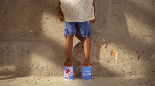 Nello spot vediamo la maestra di una tipica scolaresca africana chiamare a sé ogni bambino per segnarne la statura sul muro con un gessetto e i bambini hanno un’aria compiaciuta e soddisfatta. Solo alla fine scopriamo che sono cresciuti grazie alle lattine UNICEF sulle quali poggiavano i loro piedini.