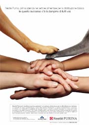 Nestlè Purina è risultata l’azienda numero 1 in Italia per la grande distribuzione nel settore alimentare e ha affidato a Publicis la campagna stampa dedicata a questo importante traguardo. 'In questo successo c’è lo zampino di tutti' questo è il pay off creato da Publicis per esprimere come il traguardo raggiunto sia testimonianza dell’impegno e della collaborazione sinergica che Purina ha creato con il trade, per offrire un servizio sempre migliore al consumatore.