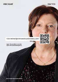 Gli annunci dei quattro testimonial prendono forma in una campagna adv stampa e web che raffigura i loro volti in primo piano con una frase teaser lasciata incompleta. Sulle loro bocche il QR code per visualizzare - collegandosi al sito www.diversamenteuguali.org - la video testimonianza di ciascuno di loro.