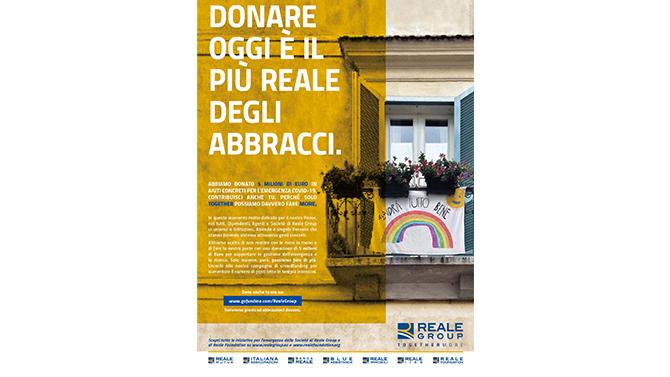 'Solo insieme, è chiaro a tutti ormai, possiamo cambiare il nostro presente e trovare soluzioni per il futuro'. È questo il pensiero alla base della scelta del Gruppo assicurativo Reale Group di donare 5 milioni di euro alla gestione dell’emergenza e alla ricerca, stimolando anche il crowdfunding, che ha trovato nella campagna sviluppata dall’agenzia Ideal il suo strumento di comunicazione. “Donare oggi è il più reale degli abbracci” vuole rispondere al bisogno di vicinanza nella distanza e di contatto vero che tutti sentono in questo difficile momento. Non possiamo farlo ora, ma cerchiamo soluzioni perché accada domani, davvero, continuando la relazione oggi: è il messaggio di Reale Group che Ideal ha tradotto ricorrendo a un’immagine che ci siamo abituati a vedere in questi giorni e che meglio riassume la resilienza e la tempra degli italiani e la volontà di ognuno di dare il proprio sostegno: un arcobaleno e una rassicurazione dipinti su lenzuoli appesi ai nostri balconi.