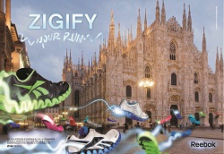 Per il print sono le coloratissime suole dalla forma a zig-zag di Reebok ZigTech a diventare protagoniste e a invadere Piazza Duomo a Milano da tutta Europa, passando dalla Porta di Brandeburgo di Berlino fino a Parigi. La creatività gioca su un concetto grafico di colore e movimento ed è in pianificazione con un flight da settembre a novembre, principalmente su testate di taglio maschile: Sport Week e Men’s Health.