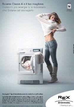 Da lunedì 16 novembre è on air sui principali settimanali nazionali la nuova campagna stampa di Rex Electrolux volta a promuovere l’asciugabiancheria Solarex. Ancora una volta, per la comunicazione, l’azienda si è rivolta alla Lowe Pirella Fronzoni. Nella campagna, dove il prodotto viene affiancato da una modella che indossa un maglione appena asciugato con Solarex, l’head-line recita: 'Solarex Classe A e il tuo maglione. Consumi più energia tu a indossarlo che Solarex ad asciugarlo.'