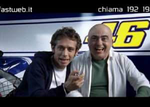 Dal 9 Maggio ritroviamo la consolidata coppia Valentino Rossi e Paolo Cevoli nel nuovo spot Fastweb.I due sono sempre più amici, tanto che il nuovo episodio li vede insieme in un luogo 'sacro': il box della moto di Valentino. E' qui che si svolge una sfida molto particolare. Con il tempo scandito da un cronometro, Valentino invita Yuri a spiegare a tutti l'ultima offerta Fastweb. Ma è chiaro che Yuri non è certo veloce come Valentino. Ed è il campione, infatti, a dover spiegare agli spettatori l'offerta.