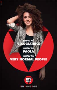 RTL 102.5, in occasione del decimo anniversario del posizionamento di Very Normal People, è tornata in stampa e affissione con una nuova campagna, affidata anche questa volta a DLV BBDO.Il concept della campagna, Sempre più VERY, sempre più NORMAL, sempre più PEOPLE, dopo essere stato lanciato da spot istituzionali, vede la sua naturale evoluzione nella nuova campagna stampa stampa e affissione.