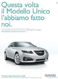 Il primo step della campagna multisoggetto Saab è pianificato durante eventi quali i congressi di alcuni ordini professionali come commercialisti, notai e avvocati. Al centro della campagna il nuovo modello 9-5.