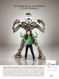 Progetti come le Smart Grids, la mobilità elettrica e il Contatore elettronico che nascono dall’attenzione di Enel al benessere concreto delle persone, sono i protagonisti della campagna ideata dall'agenzia e pianificata da Carat dal 21 novembre sino a fine anno stampa nazionale quotidiana, periodica e web. A supporto progetti speciali on/off line.