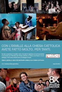 In onda da ieri, domenica 25 Aprile per 9 settimane, sulle principali emittenti televisive nazionali e satellitari, la nuova campagna Rendiconto dell’8xmille alla Chiesa Cattolica, firmata dalla Conferenza Episcopale Italiana e realizzata da Saatchi & Saatchi.Il viaggio attraverso le destinazioni dei fondi 8xmille assegnati alla Chiesa Cattolica con le firme dei contribuenti continua per raccontare storie vere e rappresentative di chi dedica il suo impegno per aiutare gli altri.