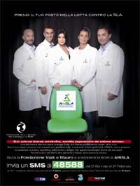 Saatchi & Saatchi Healthcare firma la campagna promossa dalla Fondazione Vialli e Mauro per la ricerca e lo sport, in collaborazione con SKY, per la raccolta fondi a sostegno della ricerca scientifica sulla SLA, che AriSLA coordina. Gianluca Vialli, Beppe Bergomi, Ilaria D’Amico, Maurizia Cacciatori, Massimo Mauro, sono i cinque ambasciatori d’eccezione che hanno messo a disposizione la loro immagine gratuitamente per questa importante causa.Sky ospiterà gratuitamente la campagna tv e, nel contempo, testate quotidiane e periodiche, con il coordinamento di ZenithOptimedia, stanno mettendo a disposizione gratuitamente i propri spazi pubblicitari; mentre anche una diffusione di segnalazione a tutti gli italiani è in fase di realizzazione grazie all’attività dell’ufficio stampa Multimedia Healthcare Communication.