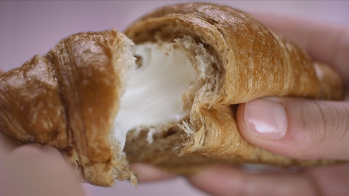 Lo spot si apre proprio con i 5 cerali che, uno dopo l’altro, rimbalzano a tempo di musica per poi scontrarsi agli altri ingredienti dell’impasto, dando forma al croissant.