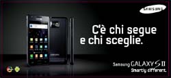 Per il lancio del nuovo smartphone top di gamma Galaxy S II, Cheil Italy supporta Samsung con una campagna di comunicazione su affissione, digital e un’operazione speciale a Milano.La campagna si fonda su un concetto di libertà e di rottura rispetto alle mode correnti, presentando Galaxy S II come alternativa per tutti coloro che hanno la capacità di scegliere in modo indipendente e svincolato. E ribadisce il posizionamento della sub-brand Galaxy, 'Smartly different'.