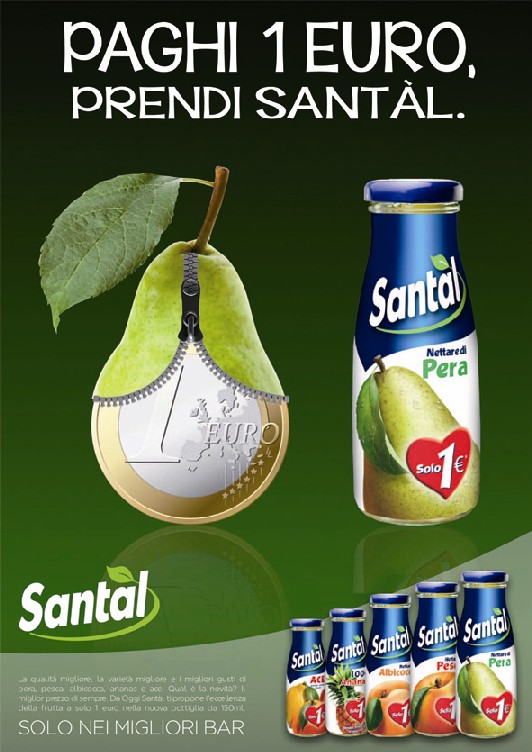 Il 2013 di Santàl si prospetta intenso e ricco di novità, anche per ciò che riguarda la comunicazione. Per il colosso del Gruppo Parmalat, uno dei riferimenti nel mercato delle bevande a base di frutta, anno nuovo significa nuovo concept e nuovi materiali tarati per il canale Ho.Re.Ca. Anche questa volta Santàl ha scelto di dare un’impronta innovativa alla propria comunicazione, ancora più originale, fresca e in linea con le scelte aziendali. Esempio calzante di questo mood, la nuova campagna atl per il lancio del succo da 150 ml a 1 euro: immediata, semplice e perfettamente a fuoco rispetto al plus di prodotto (il prezzo competitivo).