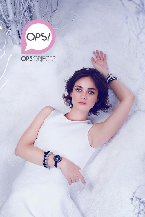Come a teatro, scenografie di fantasia che sembrano assolutamente reali. Esterni rifatti in interni. Per ribaltare lo spazio e il tempo. E’ un desiderio di estraniarsi. Una fuga onirica in un paesaggio invernale, magico e immerso nel candore per esaltare i riflessi oro e argento degli orologi e il luccichio di pavé in cristalli dei i bracciali Opsobjects.
