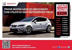 Seat invita a provare la nuova Leon e ad emozionarsi con i piloti di Seat Motorsport Italia in un roadshow che toccherà dal 23 marzo al 22 giugno: Torino, Roma, Bari, Pergusa, Milano, Firenze, Modena e Pesaro-Urbino.La campagna è on air da marzo sulle cartoline pubblicitarie, realizzate e veicolate da Ambient Media nelle principali città, per intercettare un target giovane, attivo e dinamico.