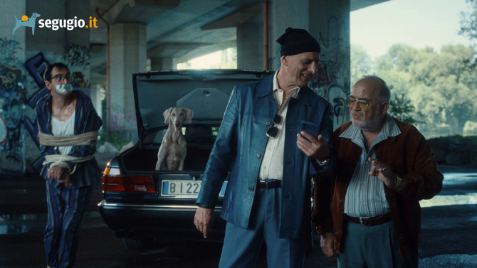 Provate a immaginarvi due rapitori che si lamentano dei costi sempre più elevati della polizza auto, definendola una rapina. La soluzione arriva proprio dall’uomo tenuto in ostaggio dai due, legato nel bagagliaio della macchina: andare su Segugio.it per risparmiare. A questo punto fa la sua comparsa Segugio, il fedele weimaraner, che spunta sulle note del jingle “Vai su Segugio”, che con il suo ritmo coinvolge anche i due rapitori che improvvisano un balletto.
