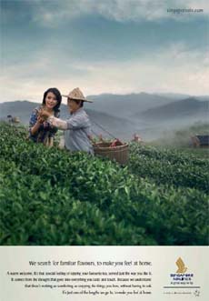 Il primo spot pubblicitario illustra come Singapore Airlines confezioni su misura prodotti di qualità per soddisfare le esigenze dei suoi passeggeri. Come scenografia sono stati selezionati una piantagione e una casa da tè nel Fujian, la regione da cui Singapore Airlines si rifornisce di tè al gelsomino.
