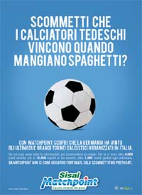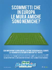 Dall’8 giugno Sisal Matchpoint è on air con una nuova campagna stampa multi-soggetto, legata ai principali eventi sportivi internazionali. Giocando su domande che sembrano bizzarre, ma che rivelano risposte frutto di analisi approfondite, la nuova campagna di comunicazione di Sisal Matchpoint sottolinea l'importanza dei dettagli e di scommettere preparati.Sisal Matchpoint offre infatti agli appassionati di sport tutte le informazioni per scommettere al meglio, con più di 10.000 esperti, oltre 1.000 eventi quotati ogni settimana e 4.000 punti vendita in Italia. Sisal Matchpoint accompagna i suoi clienti anche online: oltre al sito Matchpoint.it, da pochi giorni è disponibile una applicazione per mobile e smartphone che permette di essere sempre informati sugli ultimi eventi e scommettere live.
