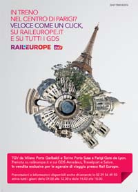 Per promuovere la nuova offerta e convogliare i viaggiatori sul sito, incentivando le prenotazioni online, SNCF si è affidata, dopo aver consultato le sue agenzie di riferimento, a Go Up Communication, che ha ideato un keyvisual in cui si vede il cuore di Parigi attraverso i suoi simboli più famosi in un fish-eye che in un colpo d'occhio ci proietta nel centro della città. La head sviluppa il principale concetto della campagna, cioè la facilità di prenotare attraverso internet: 'In treno nel centro di Parigi?' da adesso sarà 'Veloce come un click, su TGV - Europe.com'.