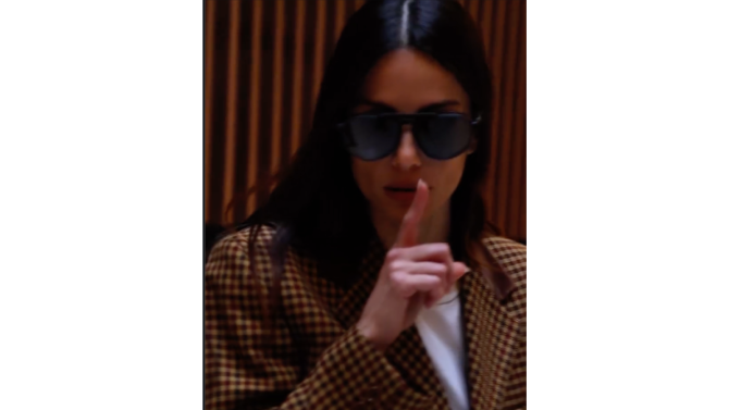 La donna emerge come protagonista sicura e determinata. Dopo aver preso la borsa, esce dall’hotel e si volta verso la camera, vestendo un nuovo modello della collezione “Emir”, appena consegnatole dal ragazzo, compiendo il gesto iconico del brand: indice sulle labbra.