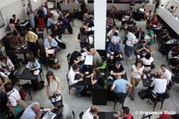90 studenti e 33 direttori creativi si sono radunati ieri, 26 maggio, al Nabar, dal primo pomeriggio fino a tarda sera, per scambiarsi opinioni e confrontarsi sui portfolio degli aspiranti pubblicitari. L'evento, di cui Corbis Images (www.corbisimages.com) è sponsor globale, ospitato in Italia da ADCI, ha registrato un successo senza precedenti di adesioni a livello mondiale.