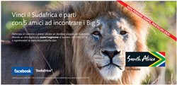 Il Sudafrica lancia una nuova campagna affissione con 5 soggetti, on air nelle metropolitane milanesi da oggi, Giovedì 17 febbraio, fino al 2 marzo. Gli annunci promuovono un concorso a premi indetto da South African Tourism, che permette di vincere un viaggio in Sudafrica per sei persone. I cinque scatti, firmati dal fotografo Simone Raso, ritraggono i famosi Big Five, leone, leopardo, elefante, rinoceronte e bufalo, ovvero gli animali più ricercati durante i safari nei parchi sudafricani. Claim della campagna 'Vinci il Sudafrica e parti con 5 amici ad incontrare i Big 5'.