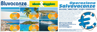 Con un nome dichiaratamente problem solving, la campagna Operazione SalvaVacanze è rivolta a chi non ha ancora scelto dove andare a prenotare le proprie vacanze e rappresenta un vero e proprio invito, per il cliente, a scoprire le tantissime soluzioni di viaggio 'abbatticrisi' proposte dalle 600 agenzie Bluvacanze e Vivere&Viaggiare presenti su tutto il territorio nazionale.