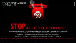 'Stop alle telefonate'. Non si tratta della classica affermazione dei conduttori alla chiusura delle votazioni telefoniche di un varietà o di un reality, ma semplicemente la campagna di sensibilizzazione che Comunicazione Perbene, l’associazione no profit presieduta da Saro Trovato, che si batte per un’ecologia all’interno dei media e contro l’inquinamento all’interno degli stessi, lancia contro il dilagare di un malcostume che sta colpendo ormai le cornette telefoniche dei cittadini italiani.Un'altra campagna si aggiunge dunque allo spot del Ministero dello Sviluppo Economico nato per mettere al corrente i cittadini della possibilità di non subire più le telefonate pubblicitarie grazie all'iscrizione al 'registro delle opposizioni', che da qualche giorno si vede in prevalenza sulle reti Rai e Mediaset e di cui Federconsumatori e Adusbef hanno chiesto la rimozione (vedi notizia correlata).