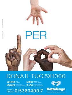 La Piccola casa della Divina Provvidenza (nota come Cottolengo), importante realtà assistenziale religiosa torinese che da 180 anni accoglie e aiuta i più poveri, gli emarginati e gli esclusi, è on air dal 14 aprile e fino a metà maggio con la prima campagna di comunicazione a tema 5x1000, gestita e pianificata da Social Heart, inedita piattaforma solidale al servizio del settore No Profit, di Strategy & Media Group, agenzia di comunicazione di Ludovica Vanni.La creatività, curata da Noodles Comunicazione, agenzia di Marco Prunotto, punta su un'immagine solare e positiva, capace di infondere fiducia e ridurre le distanze tra chi dà e chi riceve. Protagoniste di tutta la campagna sono le mani. La mano aperta di un bambino che simboleggia il 5 e quattro mani adulte che compongono la scritta 1.000. Il messaggio è diretto e immediato: donare il 5 per 1000 al Cottolengo è un gesto semplice e concreto, fatto dalle persone per le persone.