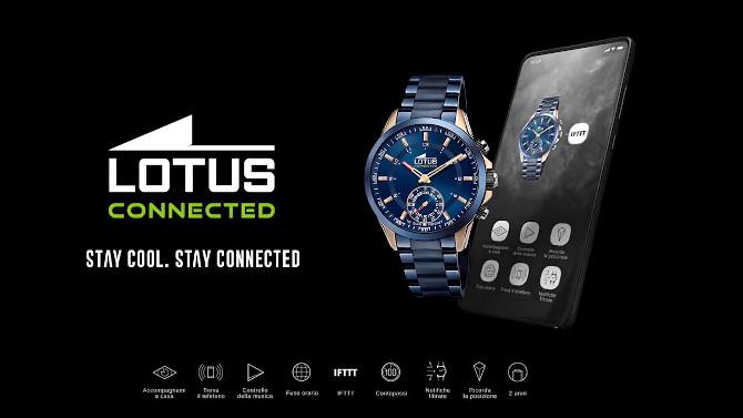 La programmazione TV prevede numerosi passaggi a rotazione di due dei nuovi spot Lotus Connected: "Controllo della domotica" nel quale il giovane protagonista con solo una leggera pressione sulla corona del suo Lotus Connected abbassa le luci per creare l’atmosfera perfetta per una serata romantica e “Accompagnami a casa” in cui lo stesso soggetto riesce a rassicurare la mamma, che lo segue da remoto, di essere arrivato a casa dopo un lungo viaggio. Nella campagna digital lo spot “Controllo della domotica” si alterna a quello “Ricorda questa posizione” in cui il protagonista grazie al suo Lotus Connected è in grado di ritrovare dove ha parcheggiato la moto dopo una notte speciale, mentre al cinema oltre al soggetto “Controllo della domotica” troviamo l’episodio Controllo della musica in cui il ragazzo interrompe la compilation che sta ascoltando per apprezzare i suoni della natura, il tutto premendo un pulsante sul suo segnatempo. Lotus Connected, ad un primo sguardo, ricorda un orologio tradizionale con quadrante e lancette e all’apparenza funziona nello stesso modo. In realtà si tratta di uno straordinario segnatempo, dal design curatissimo, che nasconde la più innovativa wearable technology: Lotus Connected è stato pensato per semplificare la vita di chi lo indossa mantenendo lo stile elegante e sofisticato di un orologio classico.